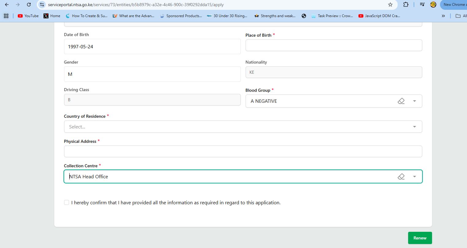 Applicants must select the NTSA office where they will later collect their smart driving licence.